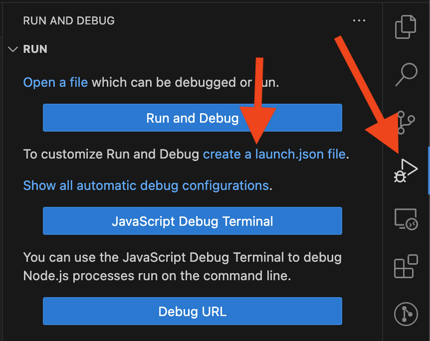 If you have the launch configuration file you can move to the next step. Otherwise go to Run and Build panel and click create a launch.json file: